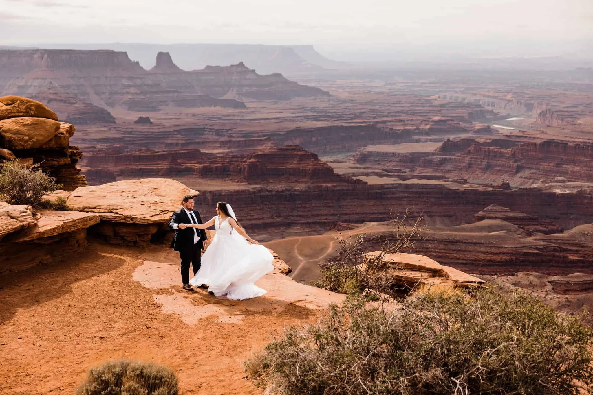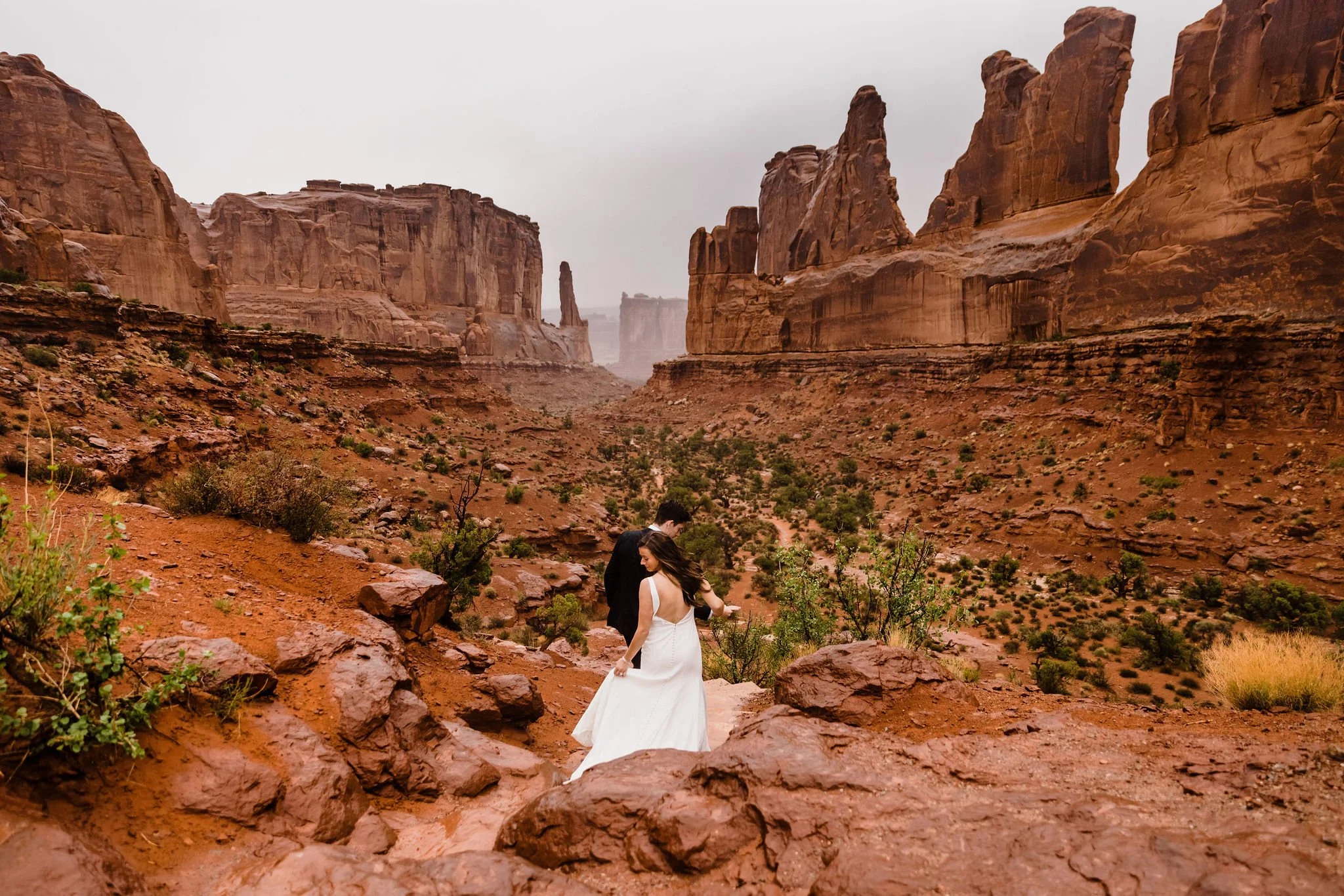 You crave an adventurous elopement day filled with hiking, driving Jeeps on off-road trails, admiring sandstone arches, and looking out over canyons.