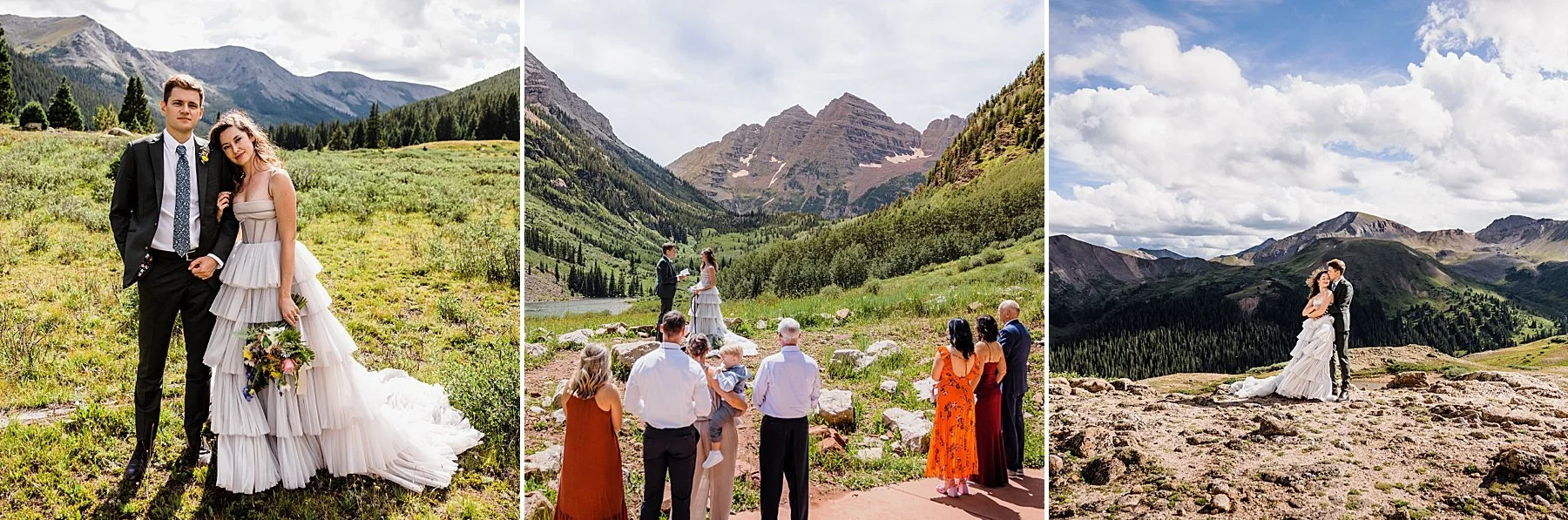 Finally, it was time Hailey and Mitch’s first look. They were both equal parts nervous and excited. Their families watched from afar as Hailey carefully made her way down the trail to where Mitch was standing. They hugged, laughed, and maybe even shed a couple of tears. They walked back to the cars together and we headed to the Maroon Bells.