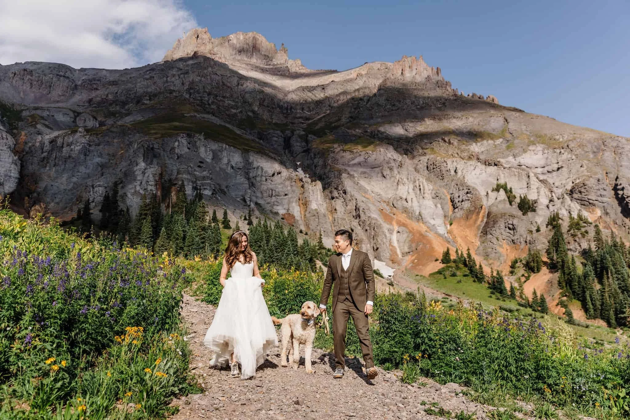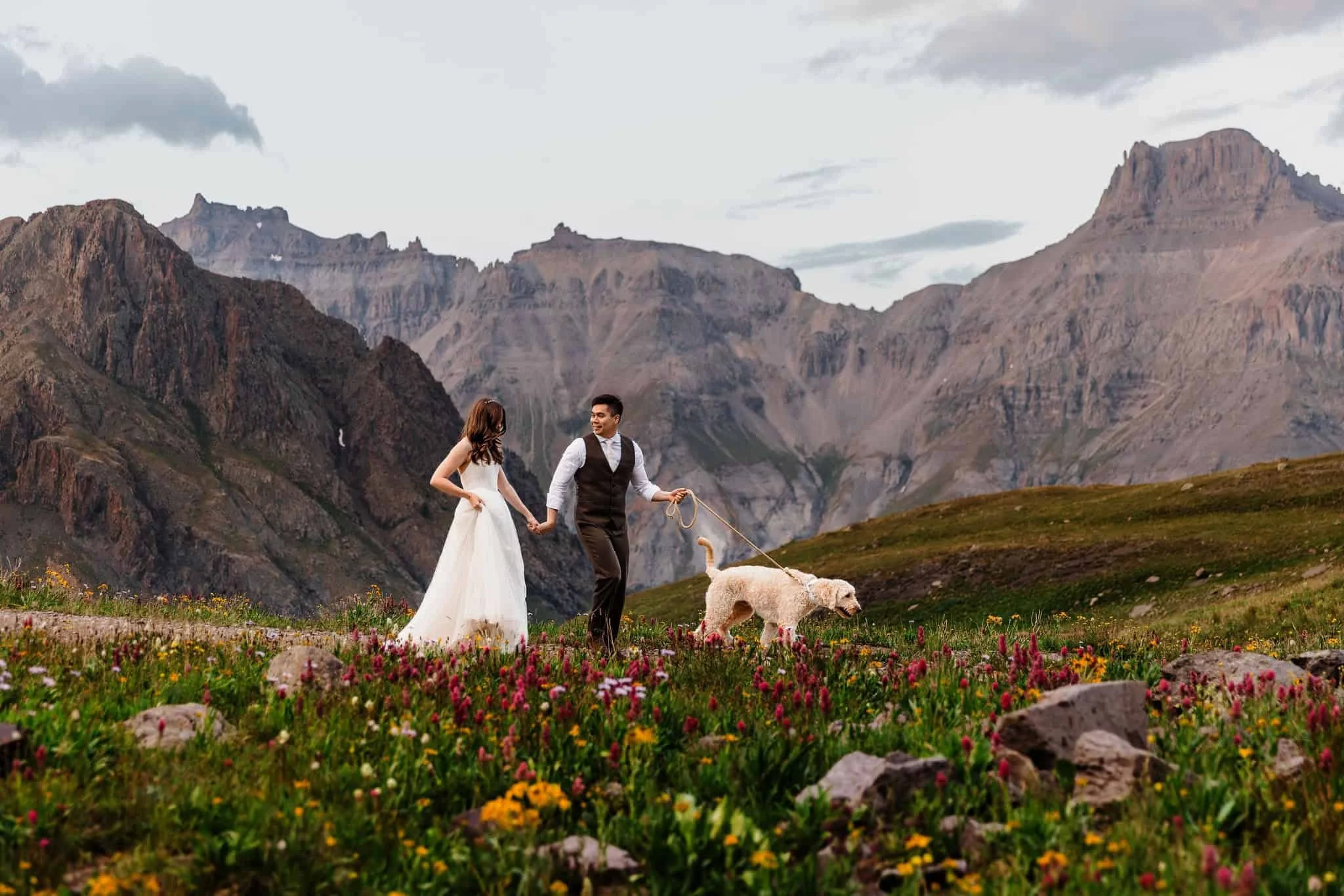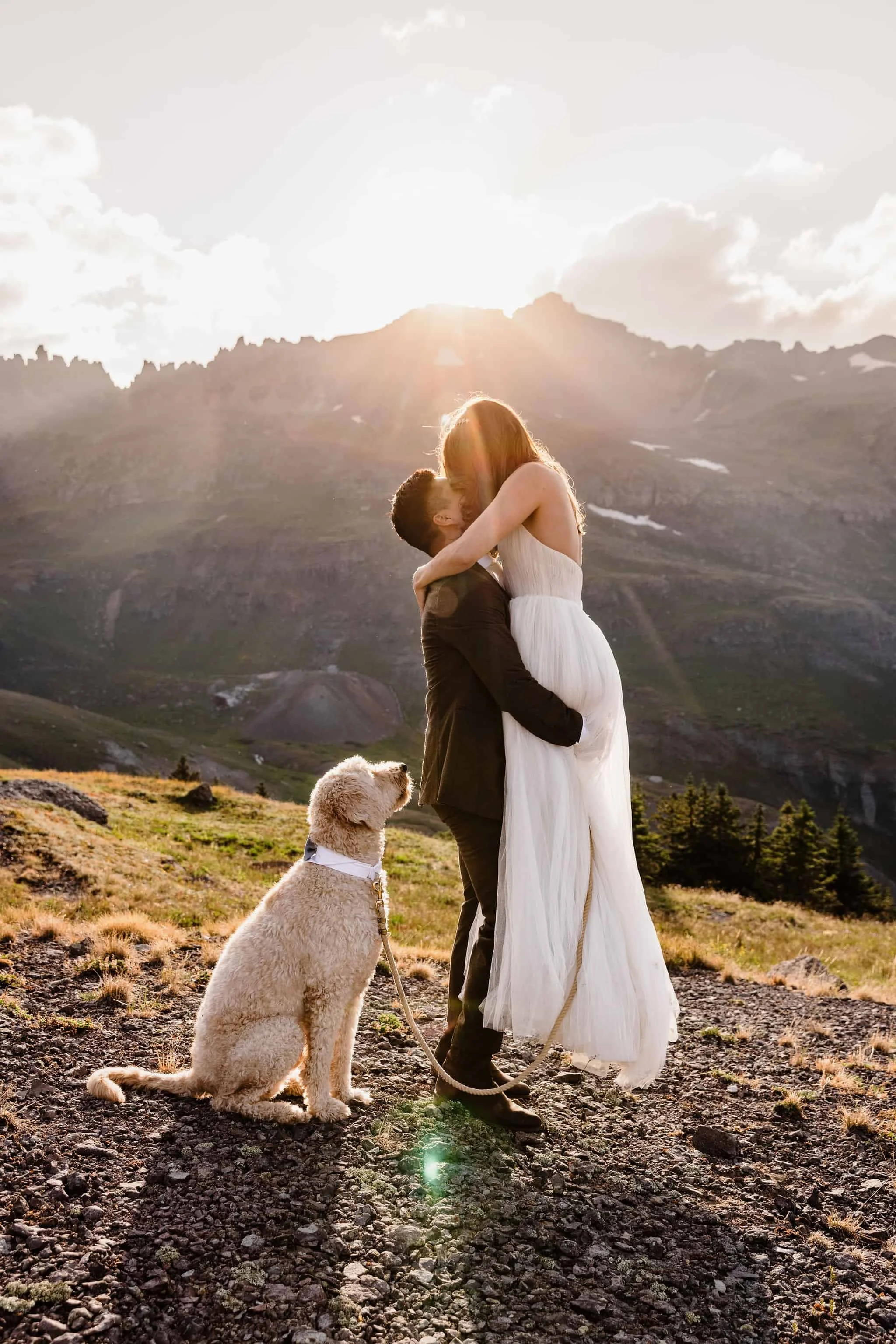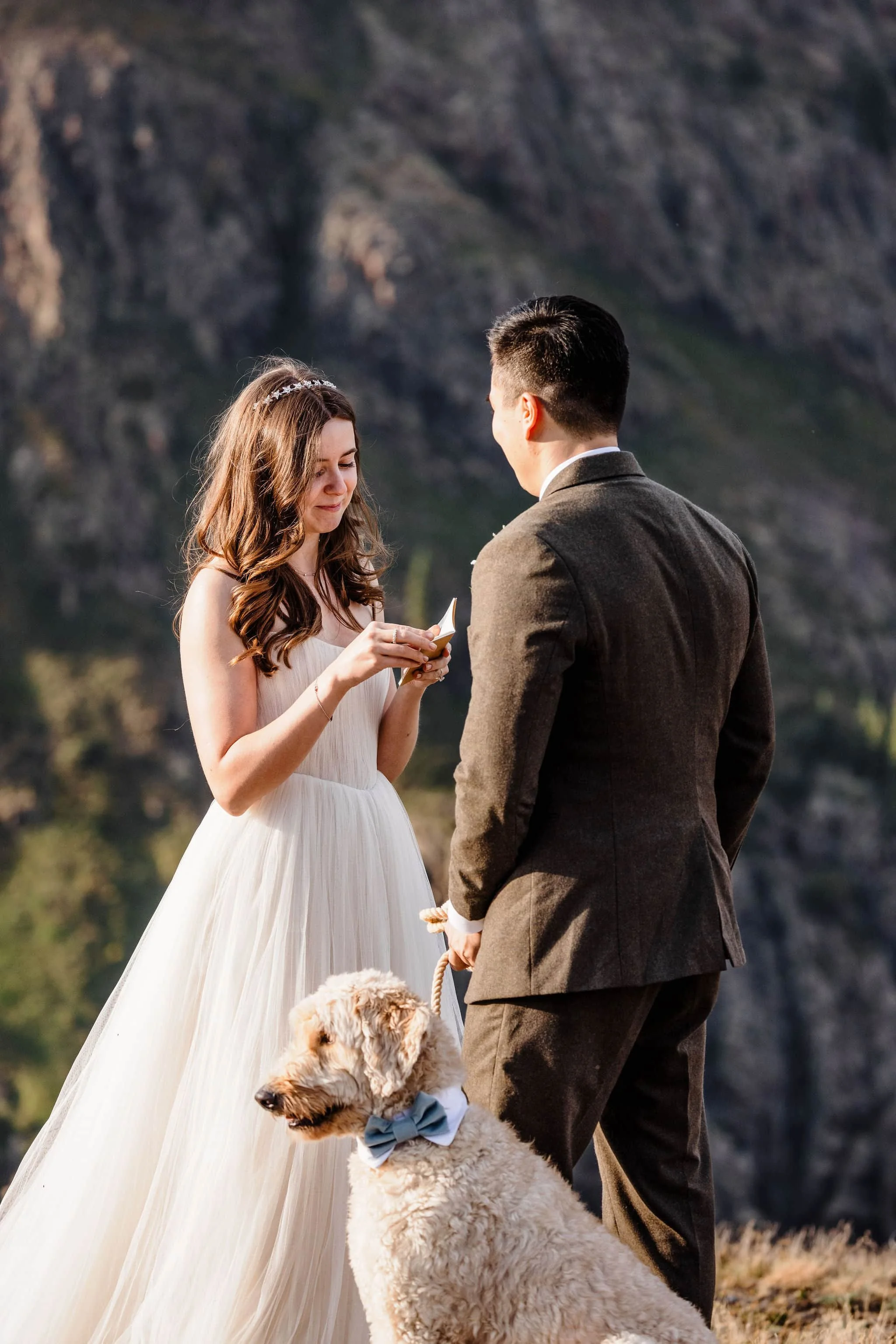 Kelsey and Han met while interning at NASA and bonded over their shared love of dogs, the outdoors, and travel. After getting engaged at the top of Tongariro Crossing in New Zealand, they started exploring options for their wedding. After realizing how much stress is involved with planning a big wedding, they decided to elope in Colorado with just their dog, Blu in attendance, as well as their other two dogs in spirit (Burt stayed home because he doesn’t travel well and Kelsey’s soul dog Bagel who passed away earlier this year).
